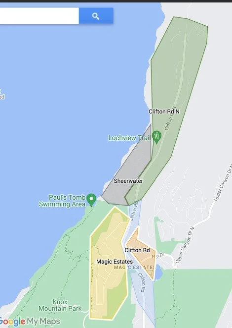 Our Association covers five areas within the City of Kelowna, stretching from Clifton Road North, just before Clifton North Estates and south down Clifton Road to Grainger Road. The five areas are: